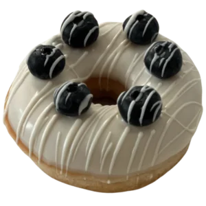 mit weißer Schokoladenglasur, Heidelbeeren und Vanillecremefüllung