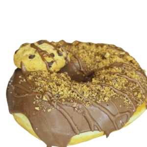 Vollmilchschokoladenglasur, Cookiekeks, Cookiestreuseln und Vanilliecremefüllung